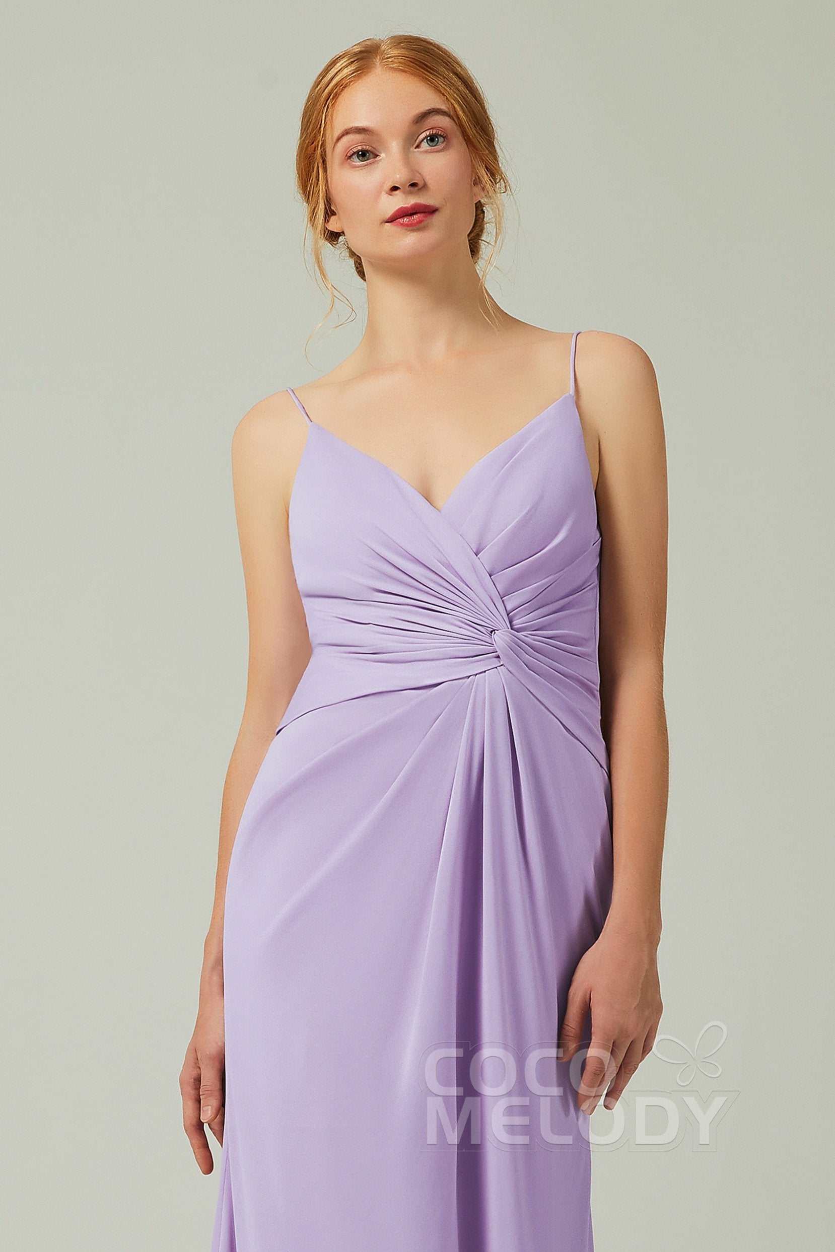 This stunning bridesmaid dress features a chic open back and delicate pleating, crafted from elegant chiffon. The spaghetti straps and floor-length sheath-column silhouette create a graceful look, highlighting the natural waist while exuding confidence and charm. Perfect for any special occasion.
