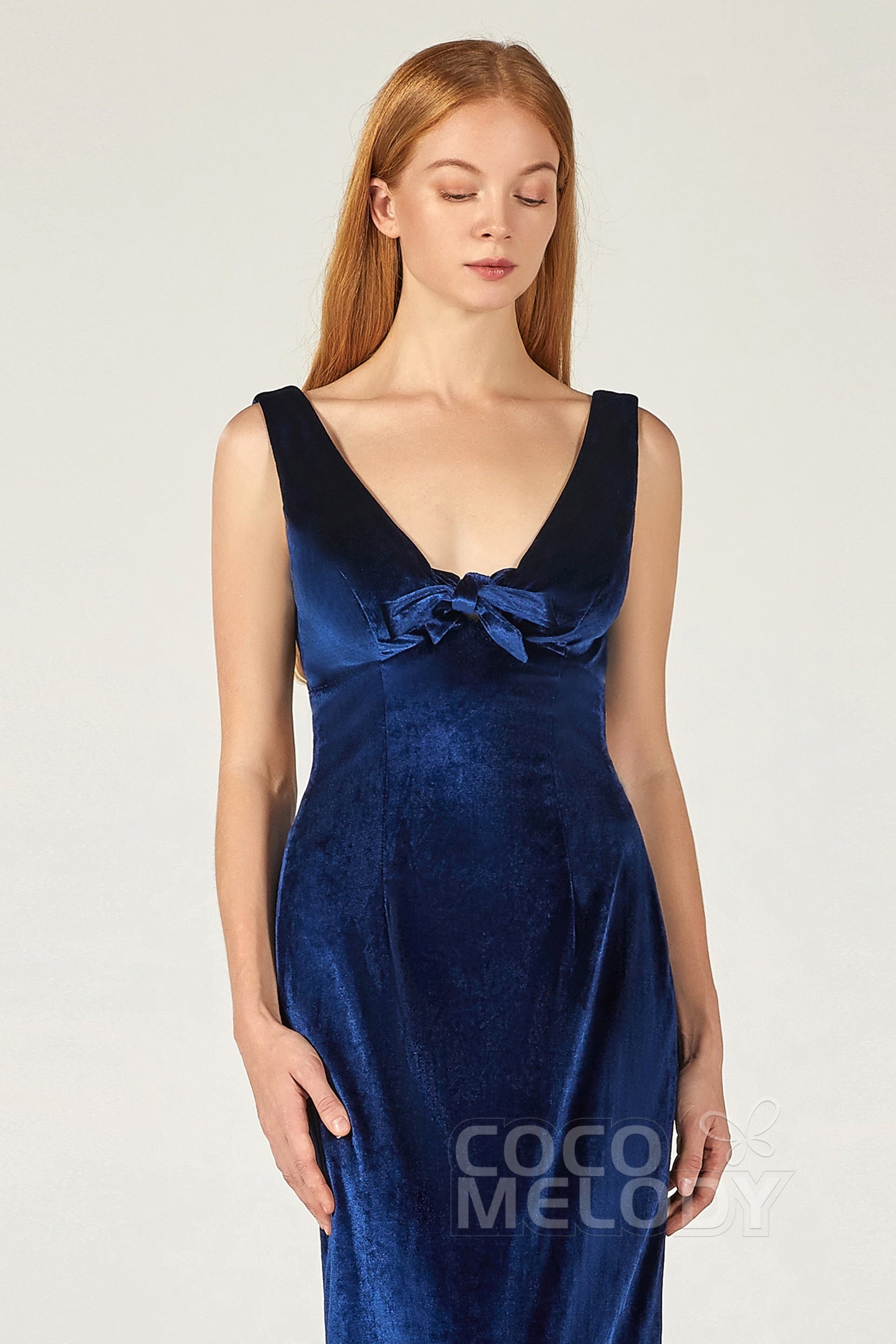 Sheath-Column Floor Length Velvet Bridesmaid Dress Formal Dresses CB0369