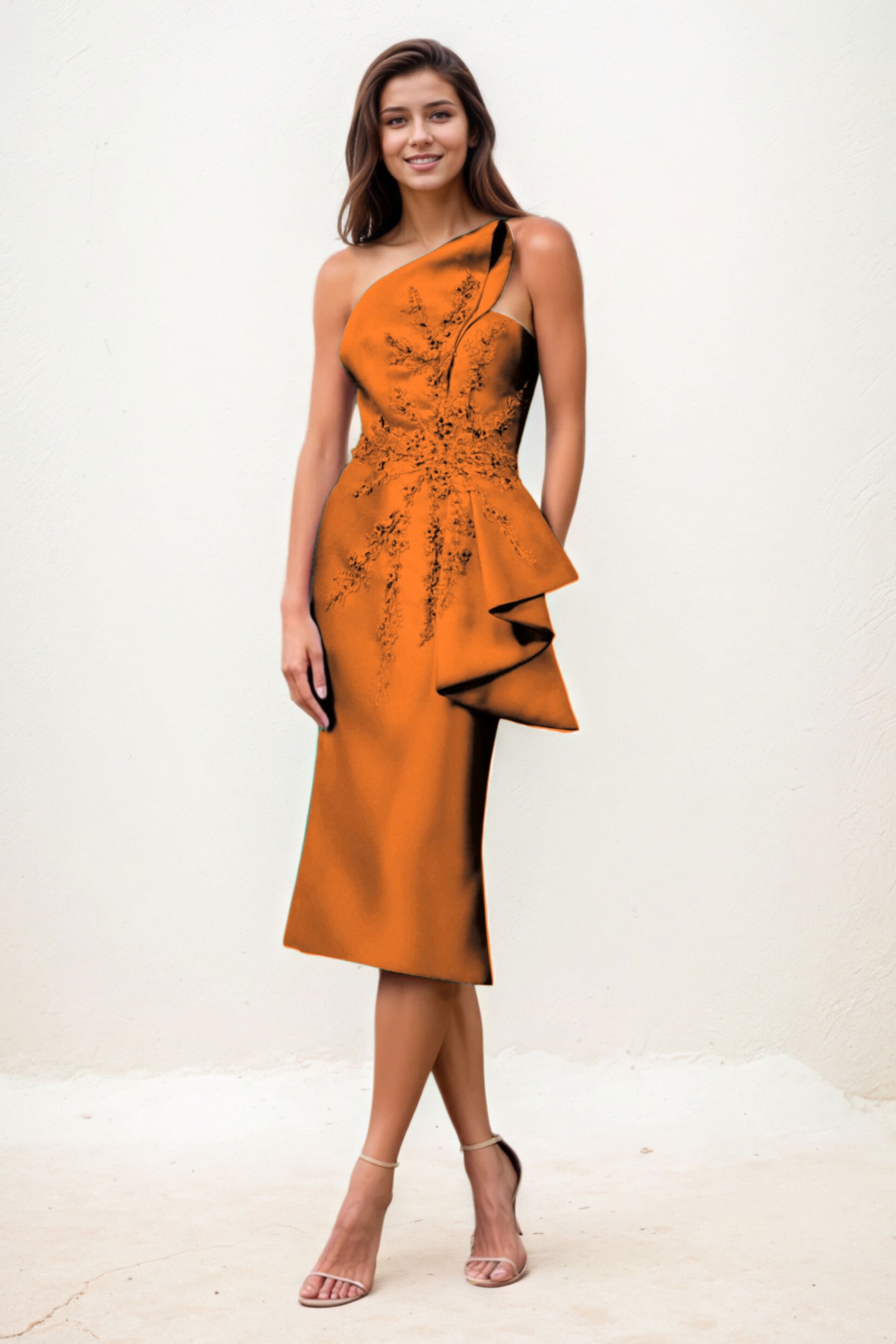 Sheath-Column Midi Satin Wedding Guest Dress CG0292