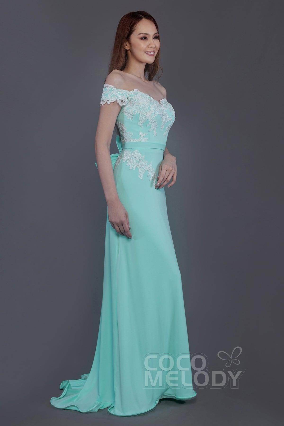 Sheath Sweep Train Knitted Fabric Bridesmaid Dress PR3561