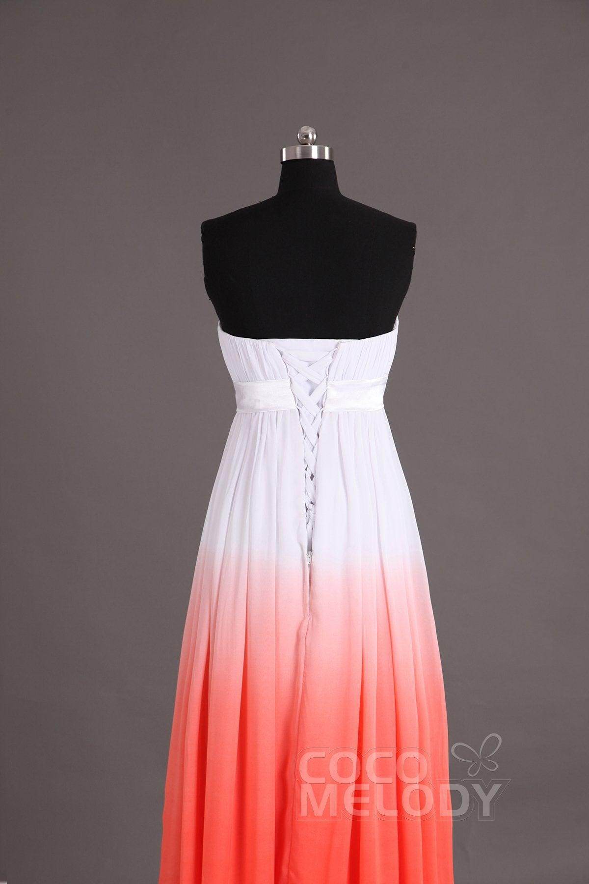 This exquisite bridesmaid dress in lightweight chiffon features a sleek sheath-column silhouette. The sweetheart neckline and lace-up corset back create a stunning fit, while delicate pleating and ribbon accents enhance its elegance.