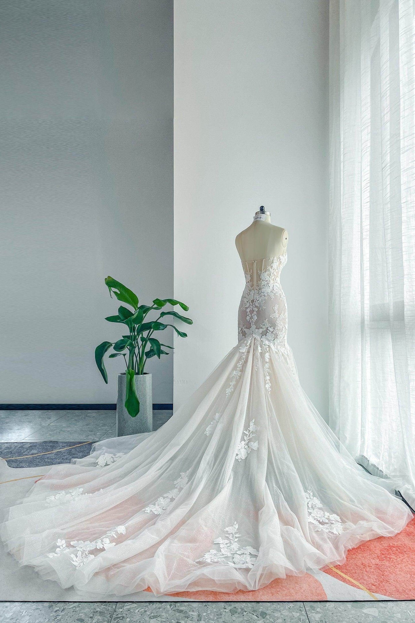 Trumpet-Mermaid Chapel Train Lace Tulle Wedding Dress CW3133