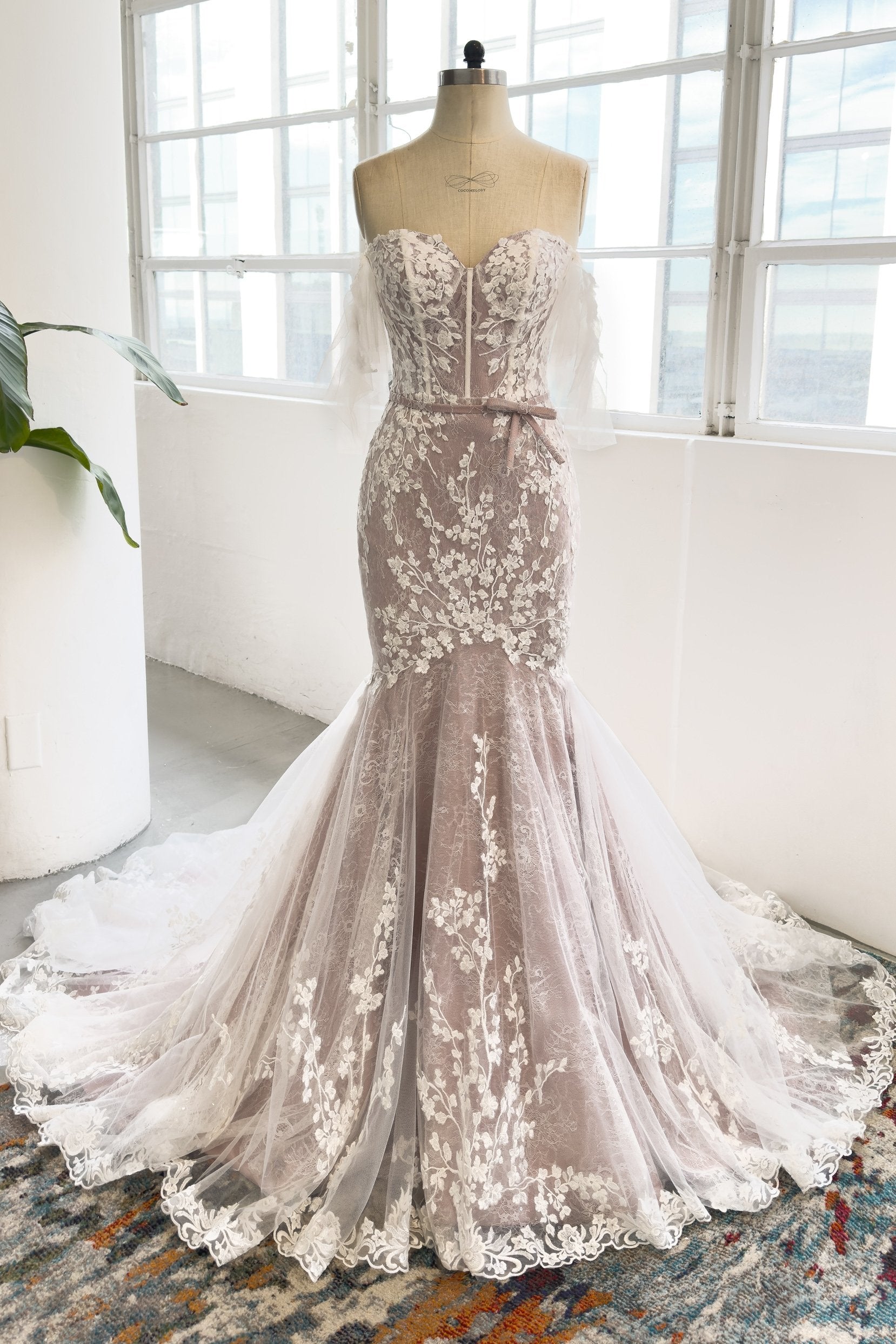 Unveil your beauty in the KRYSTAL gown, a stunning trumpet-mermaid design adorned with dazzling appliques and an elegant off-the-shoulder neckline. Perfect for hotel, church, garden, or hall weddings, this gown radiates sophistication and sparkle. Customize your dream look for 2024 today!