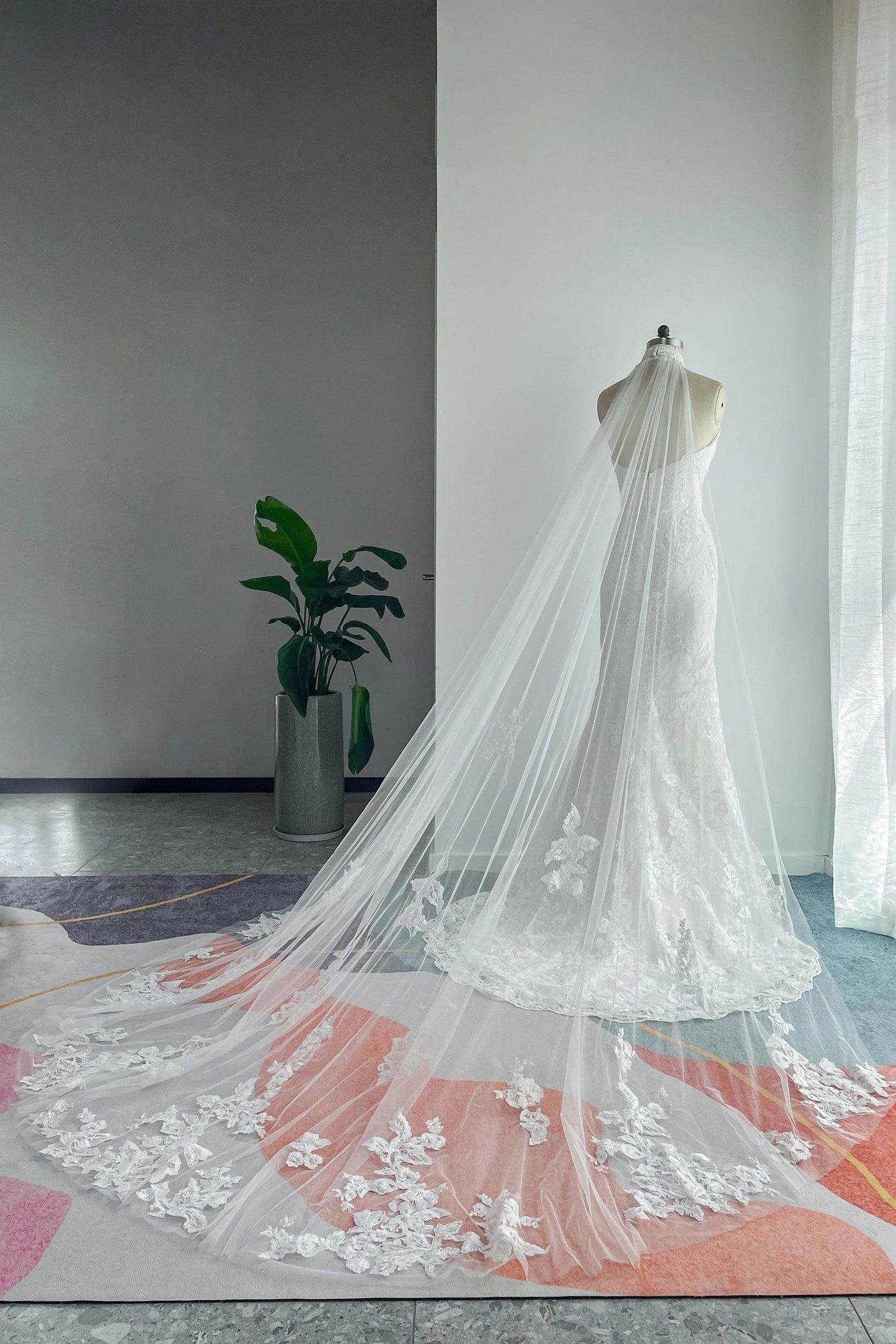 Trumpet-Mermaid Sweep-Brush Train Lace Tulle Wedding Dress CW3147