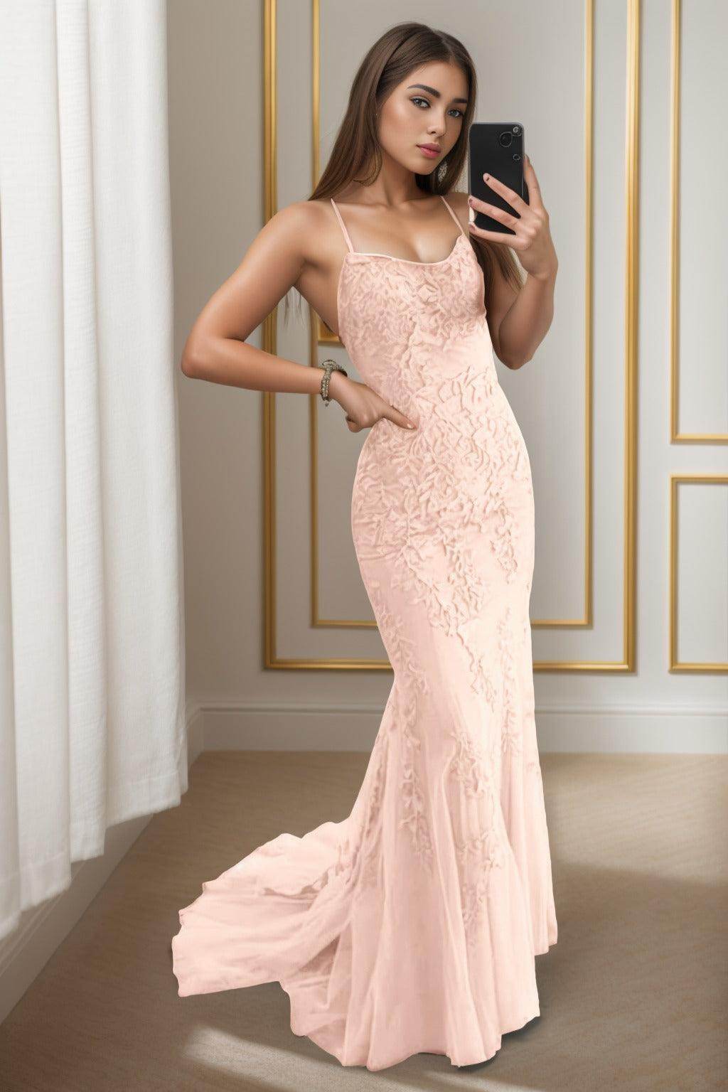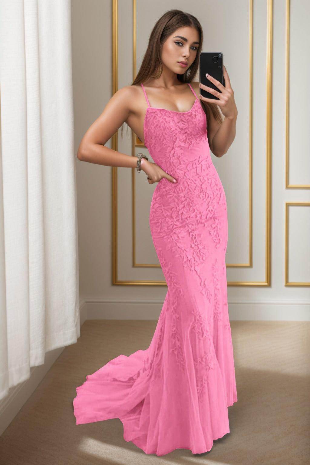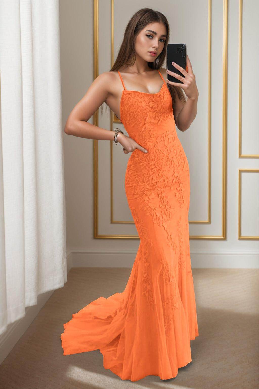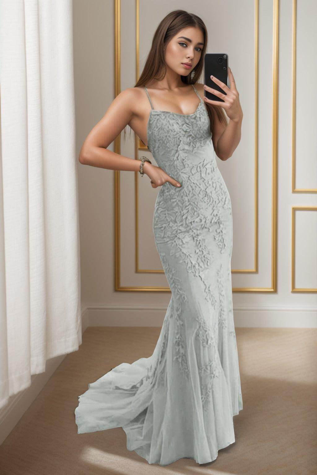 Introducing our astonishing Mermaid Prom Dress. It is really elegant, with its little spaghetti straps and its attractive natural waist. Its sweeping train and crisscross back accents make it ideal for a variety of situations and guarantee a gorgeous silhouette wherever it is worn.