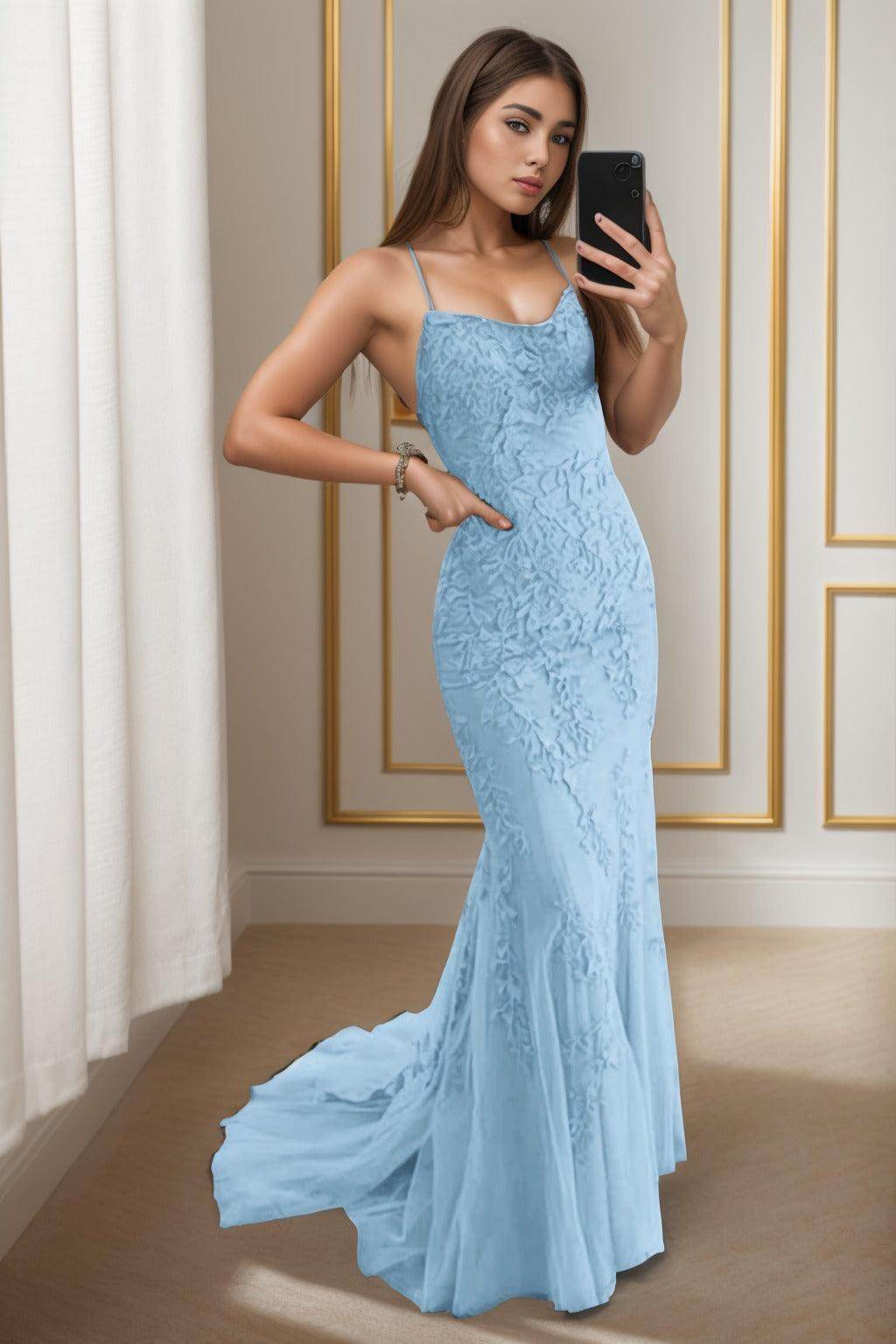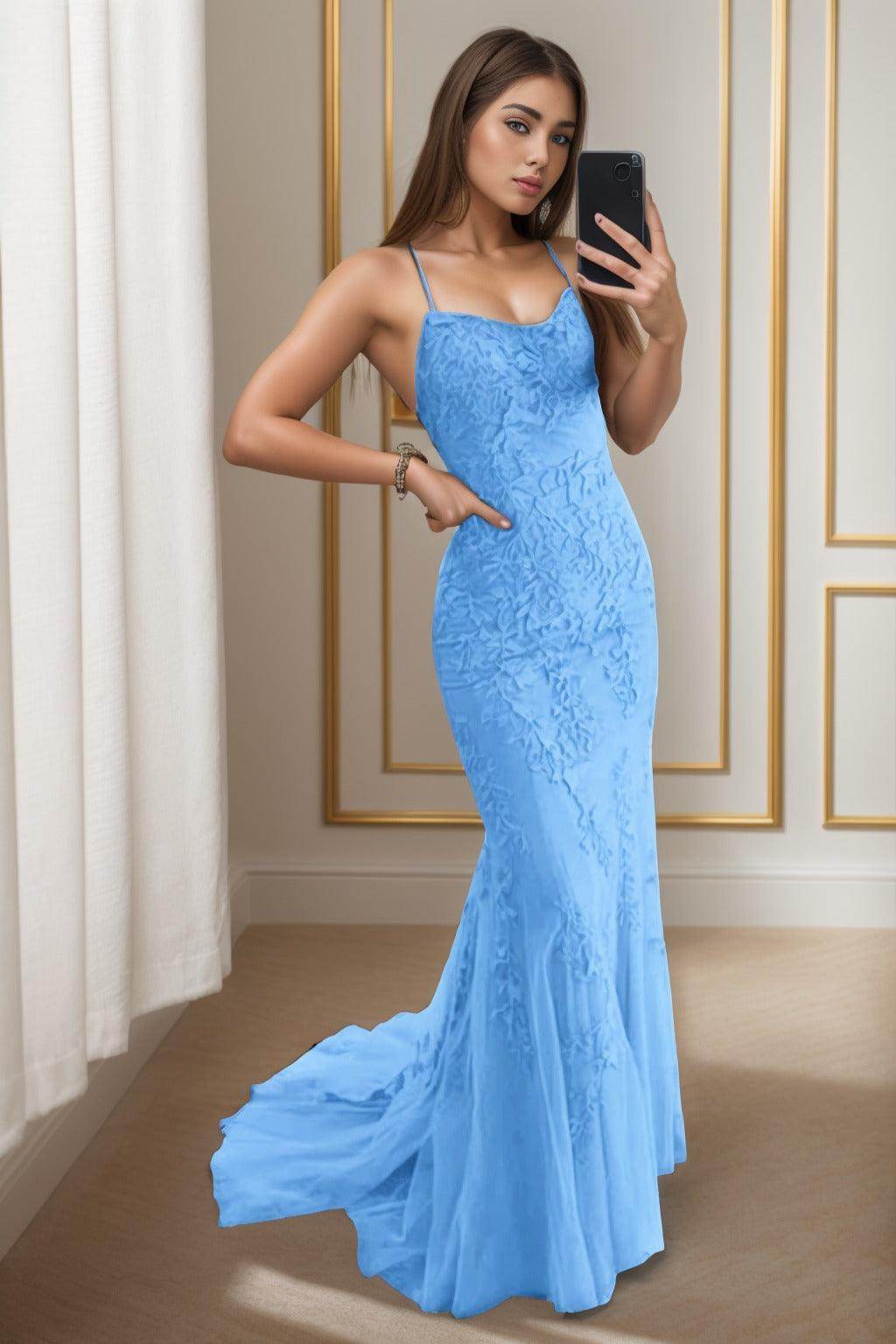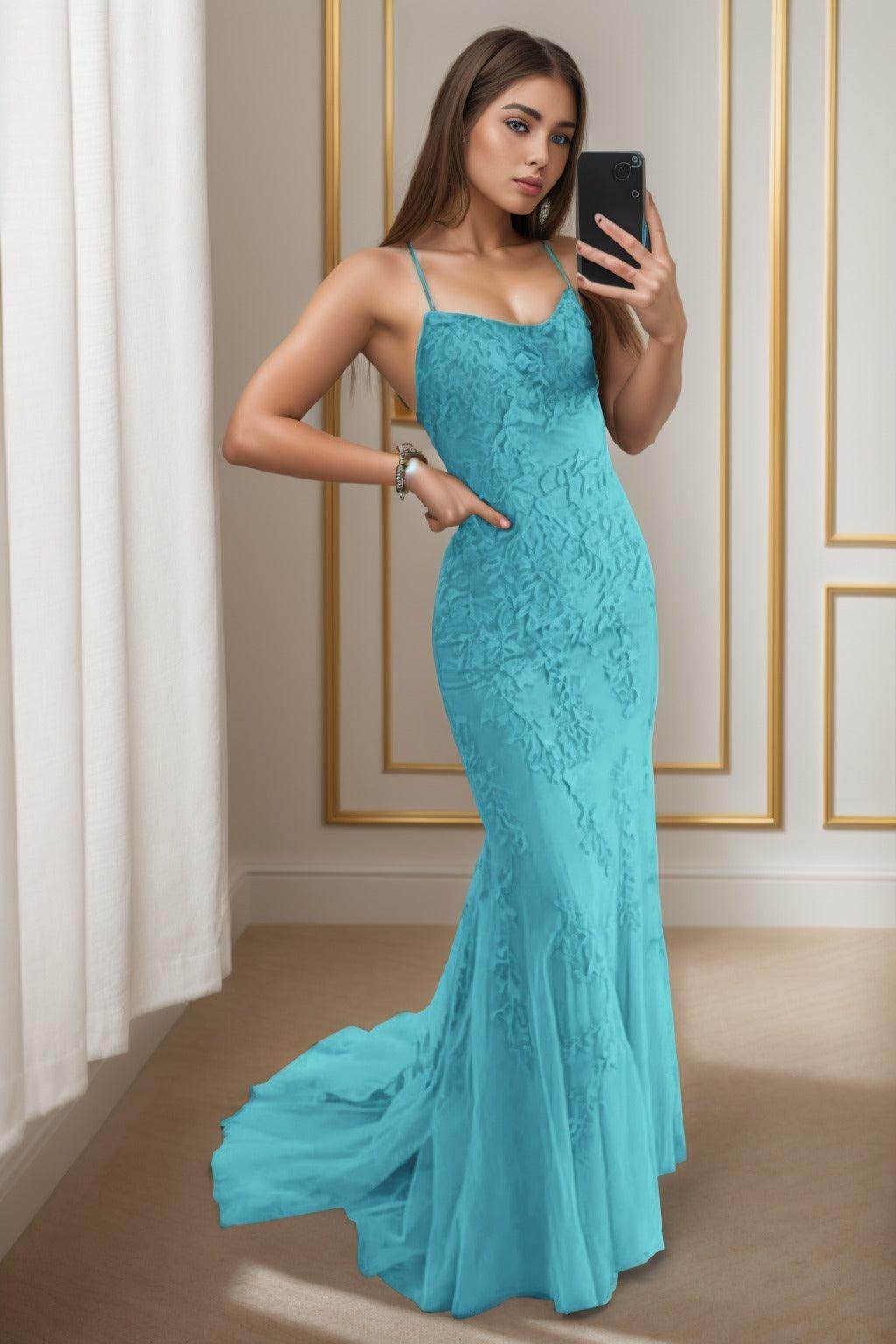 Introducing our astonishing Mermaid Prom Dress. It is really elegant, with its little spaghetti straps and its attractive natural waist. Its sweeping train and crisscross back accents make it ideal for a variety of situations and guarantee a gorgeous silhouette wherever it is worn.