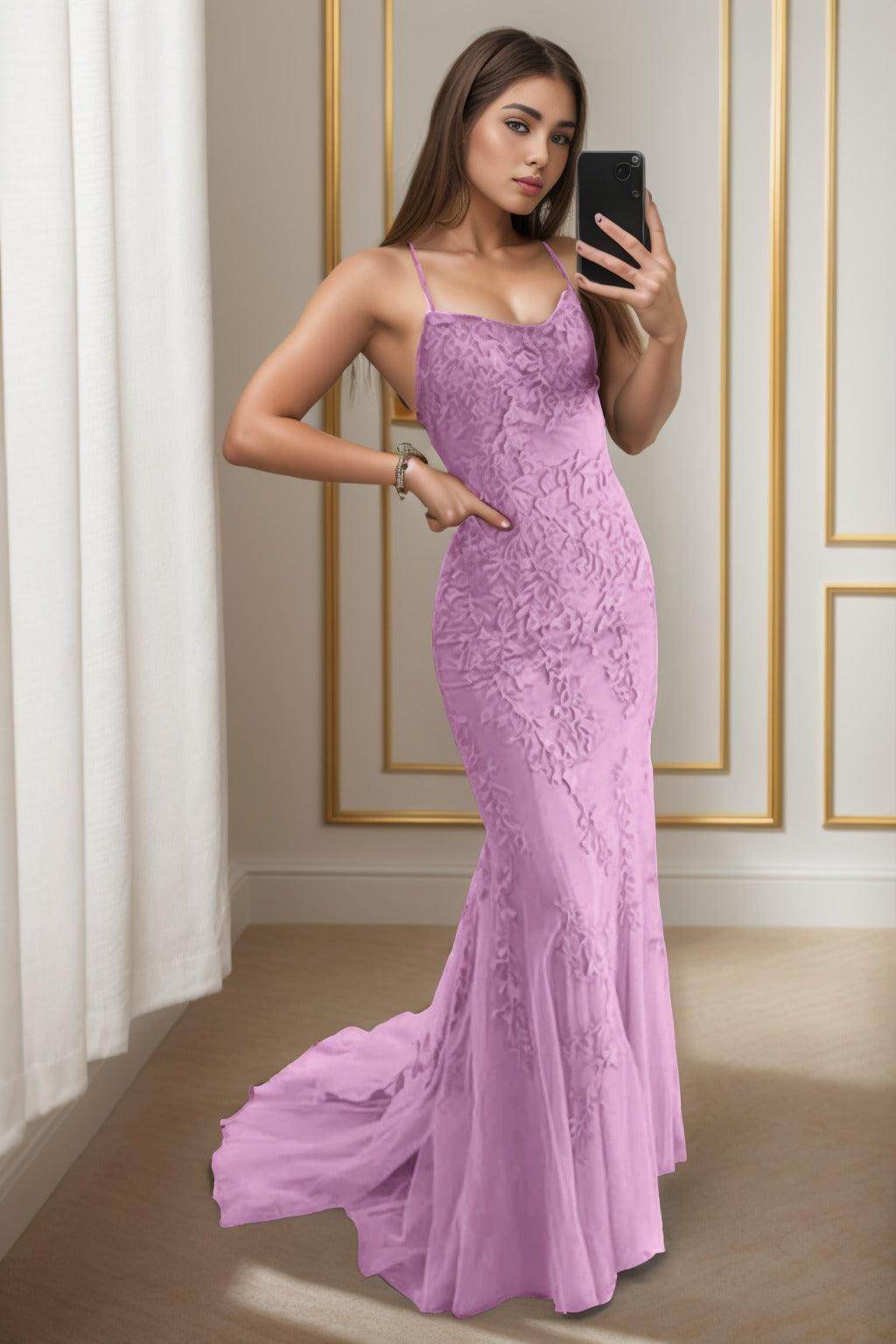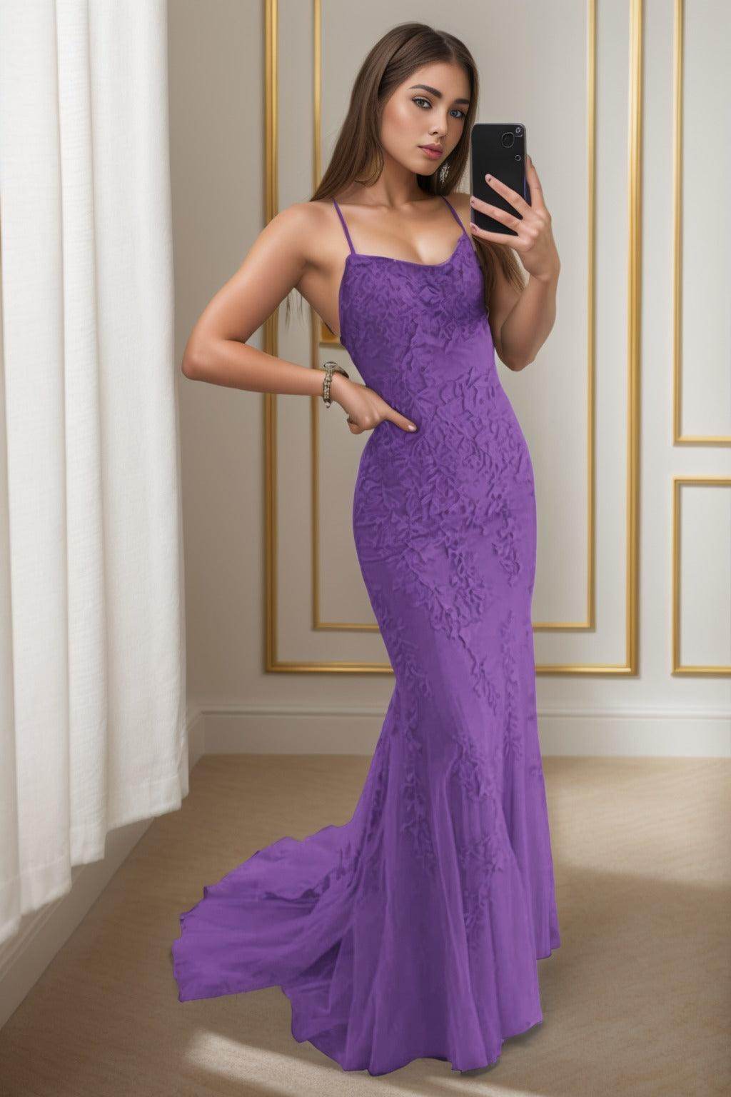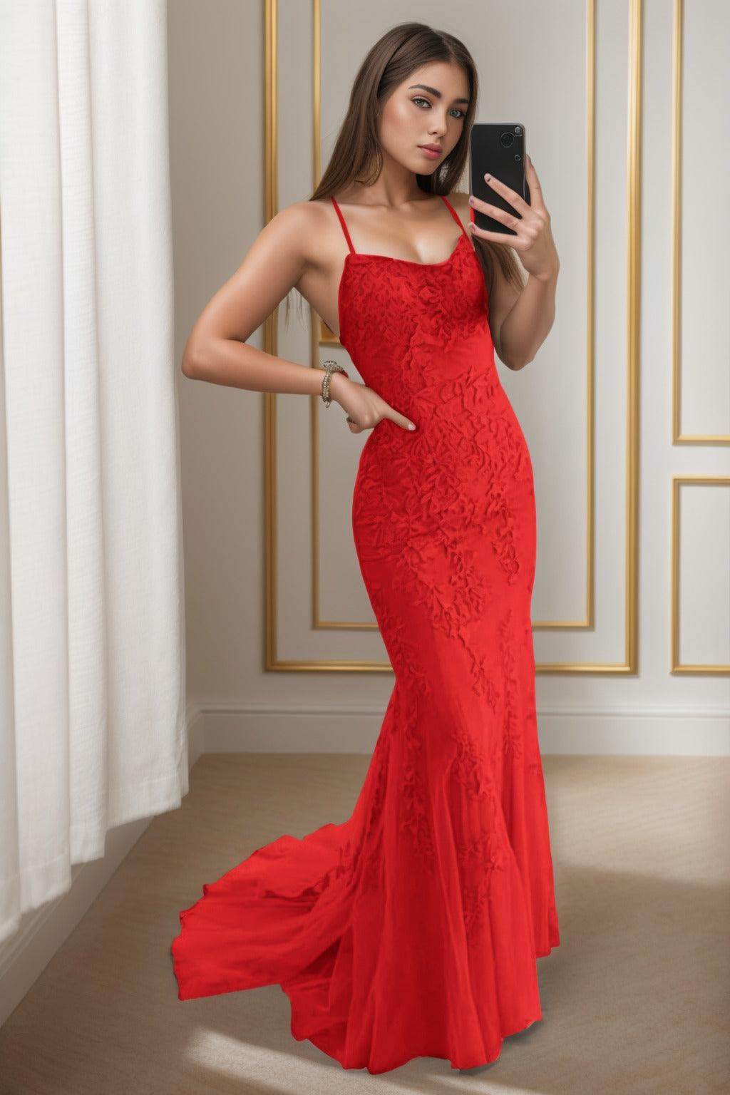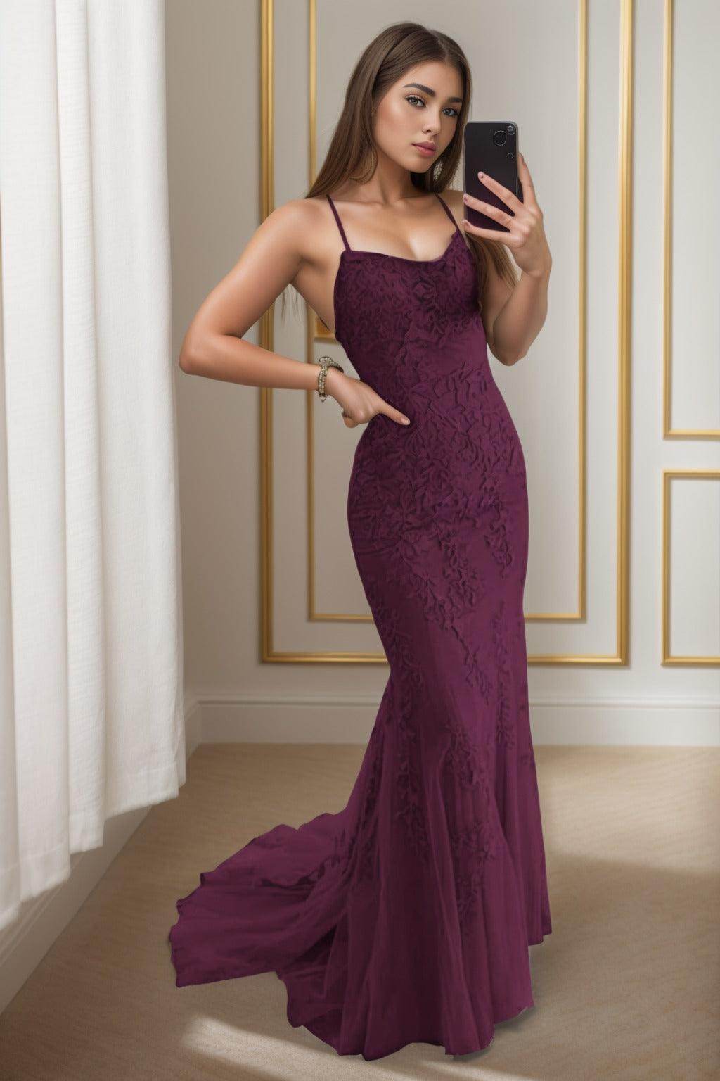 Introducing our astonishing Mermaid Prom Dress. It is really elegant, with its little spaghetti straps and its attractive natural waist. Its sweeping train and crisscross back accents make it ideal for a variety of situations and guarantee a gorgeous silhouette wherever it is worn.