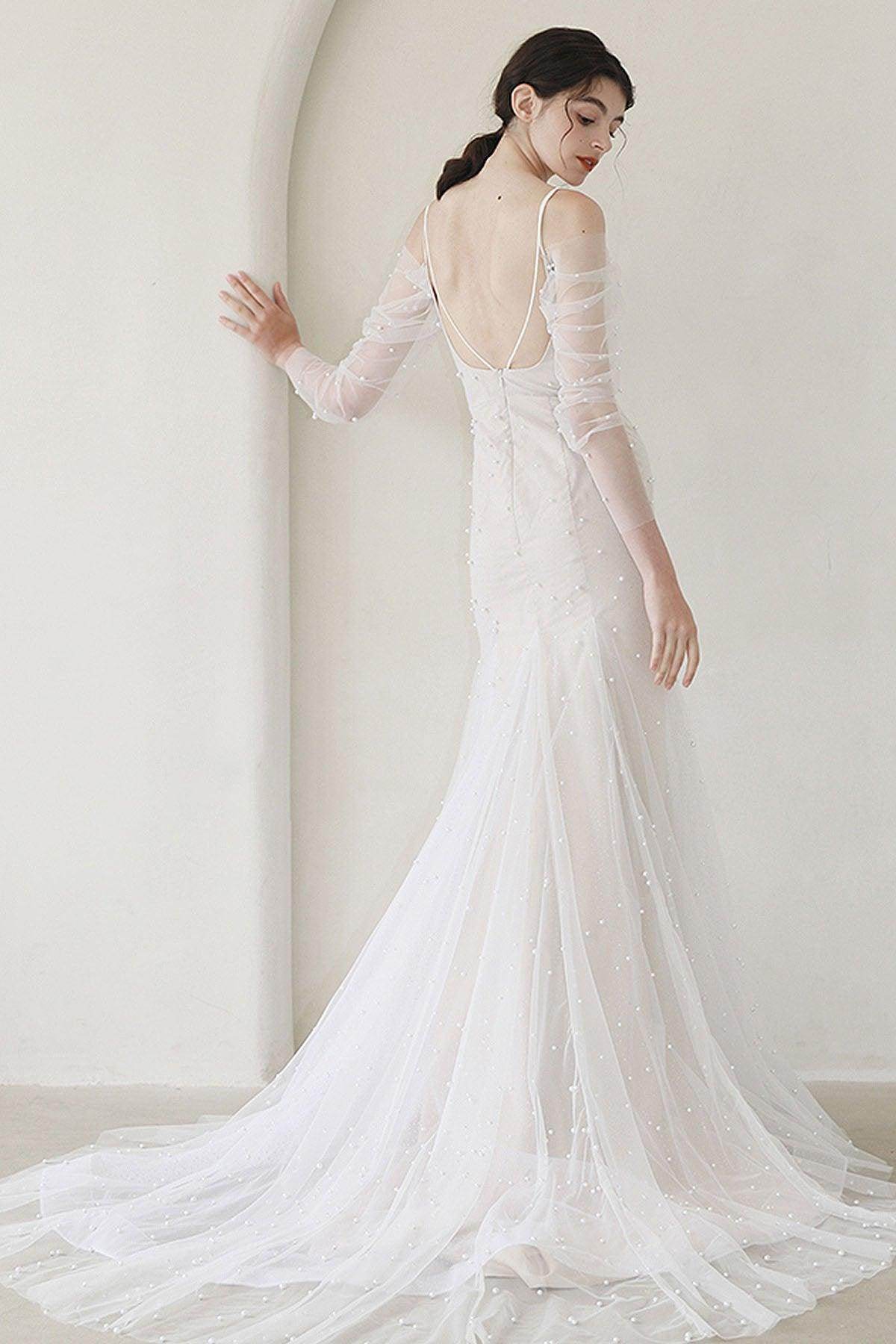 Trumpet-Mermaid Sweep-Brush Train Tulle Wedding Dress CW3053