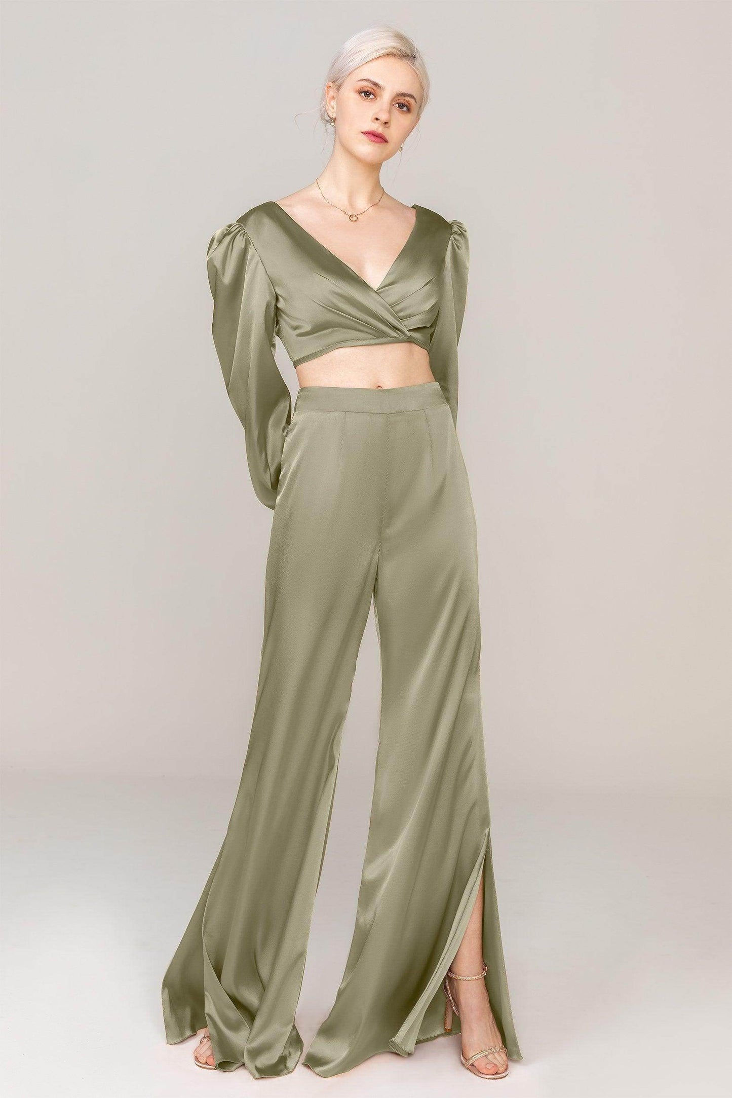 Two-Piece Floor Length Luxe Satin Dress CS0308