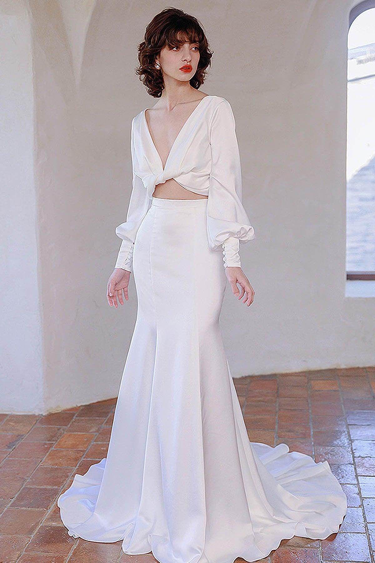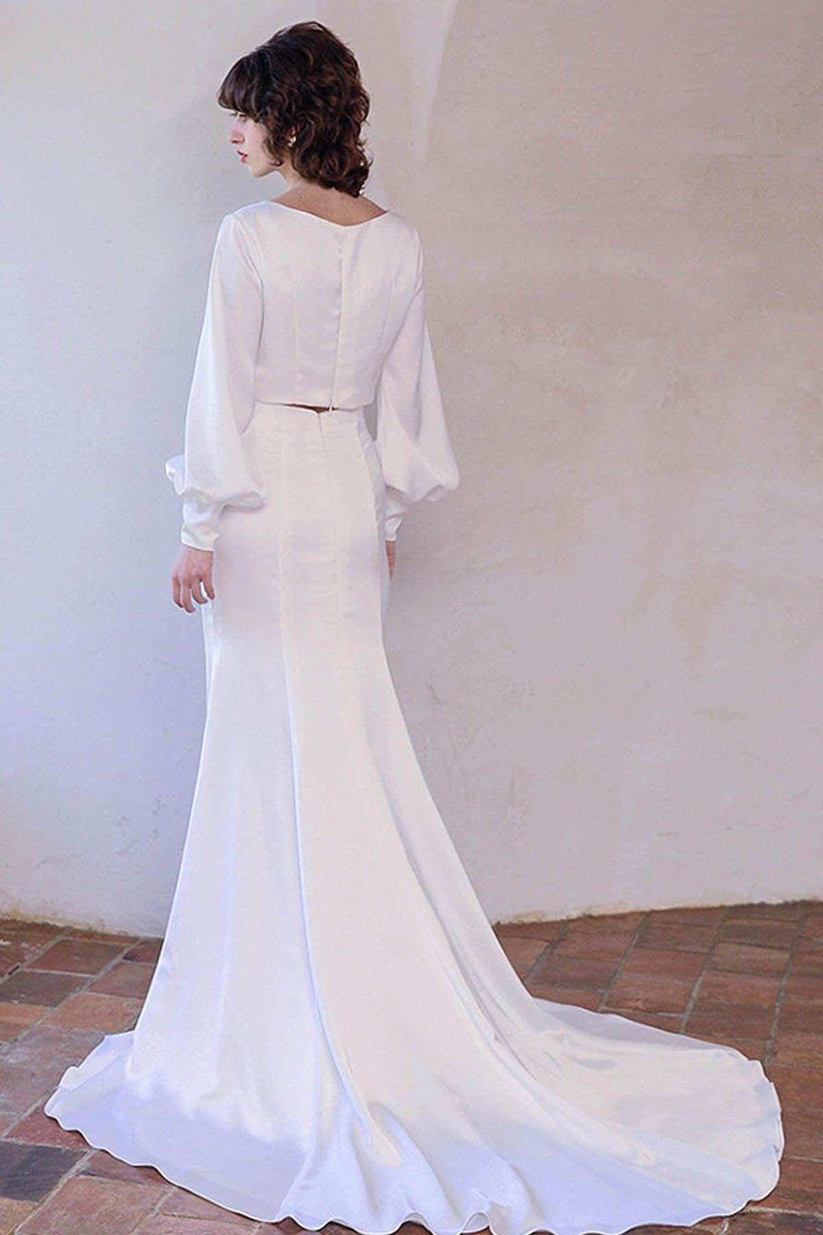 Two-Piece Sweep-Brush Train Satin Wedding Dress CW3048
